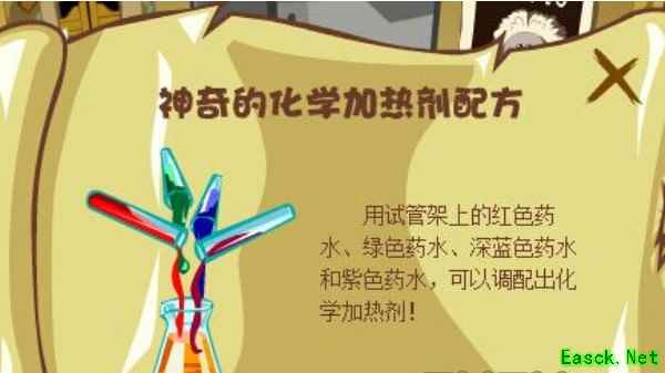 2、点击后会看到神奇化学加热剂配方,然后点击墙上的试管制作药剂