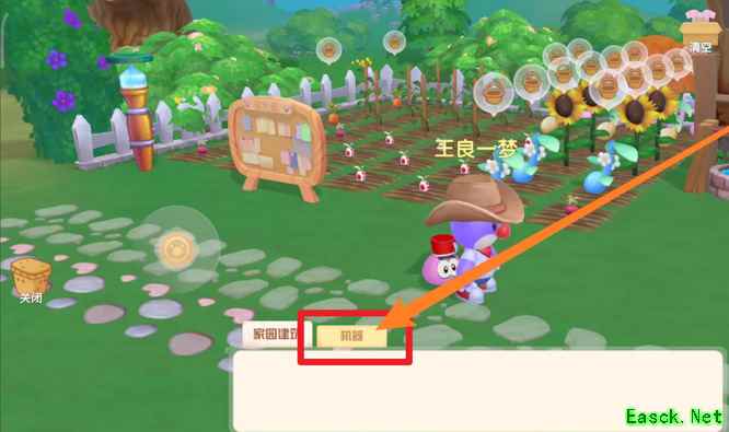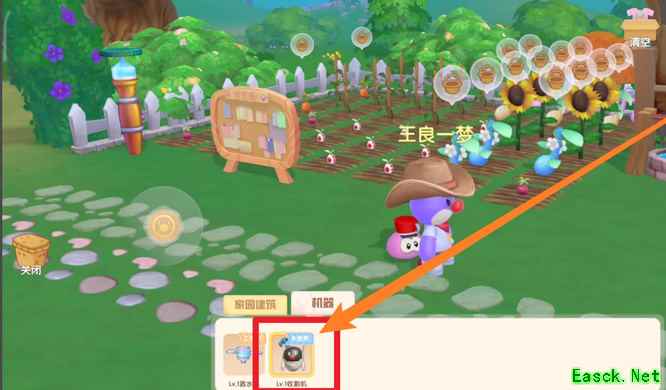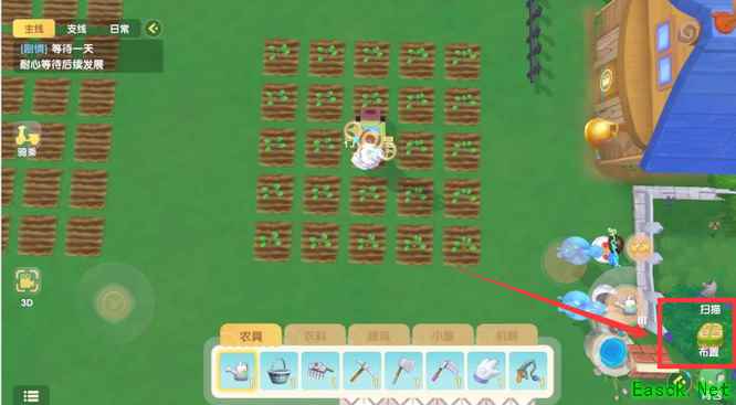后花园放置机器方法:摆放布置按钮—机器—耕地—箭头