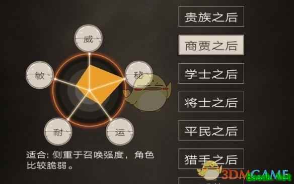 3、商贾之后是非常推荐新手使用的一个身份,和贵族之后属于对立的两种身份。