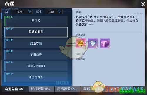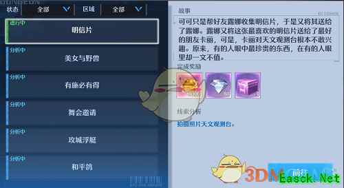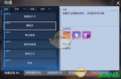 2、如上图所示,根据【明信片】这个奇遇给大家做一个案例:奇遇:明信片。