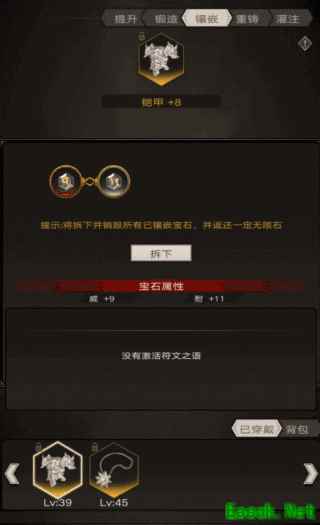 当拥有带孔装备后,进入“地图”-“兑换”页面,通过无限石兑换宝石,随后便可以把这些宝石镶嵌到装备中。如果你对装备的孔不满意,那么也可以在“重铸”功能中改变装备的孔位,要注意已经镶嵌宝石的装备,需要将宝石拆掉后才可进行“重铸”。