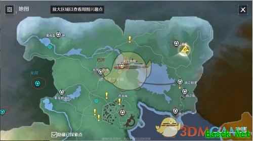6、传送点解锁后,该地图就会被点亮,此时就能看到该图的黑石方、秘境、宝箱、以及拍照点。