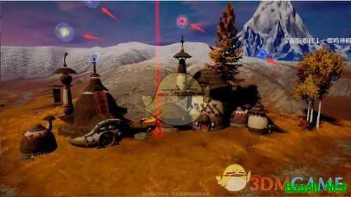 4、接完任务后屏幕会显示距离每个元素球距离的光标,根据光标配合喷气机飞到空中即可获取。