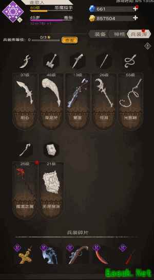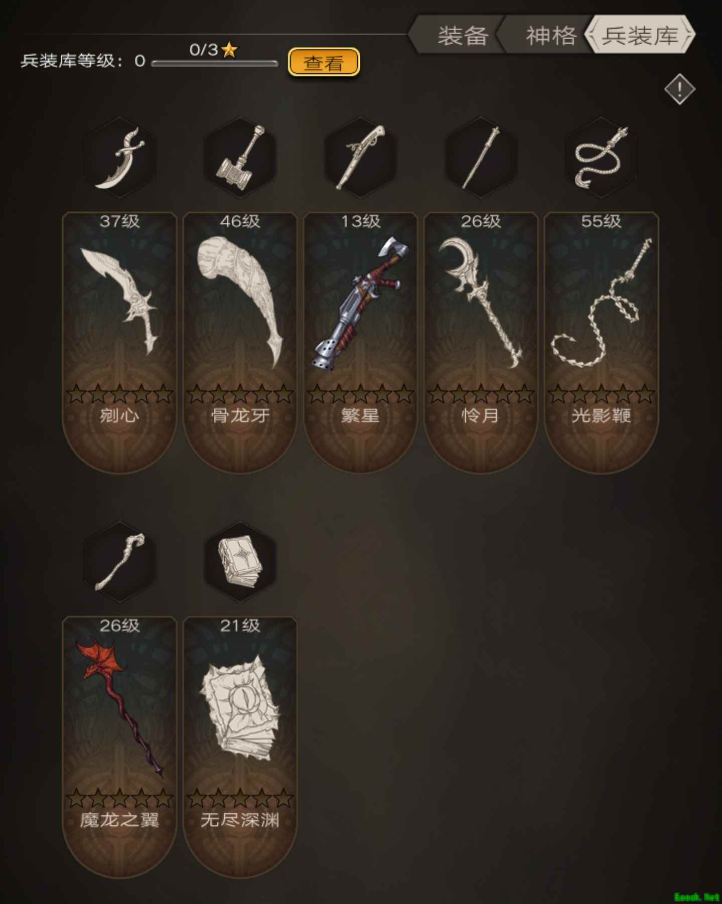兵装分为等级和星级两个模块,通过回收对应类型的武器,可提升兵装等级;而只有收集兵装对应的碎片,才能为其升星。