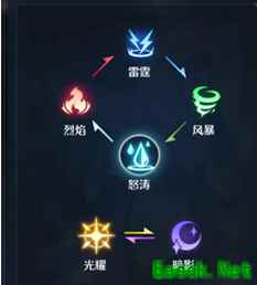 1、幻灵一共分为风暴、烈焰、雷霆、怒涛、暗影、光耀六大属性,属性之间存在着克制关系;