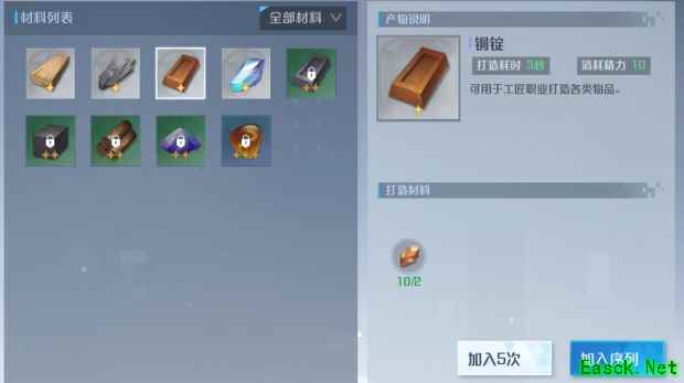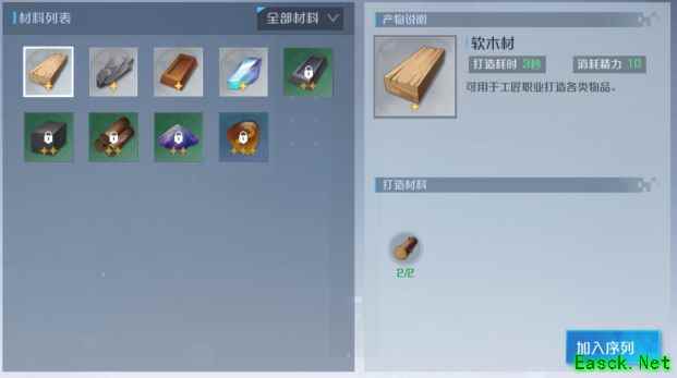 Tip:一次性多收集一点材料以节约时间,一次材料加工最多可以20次。节约时间的同时,还能快速增加熟练度。