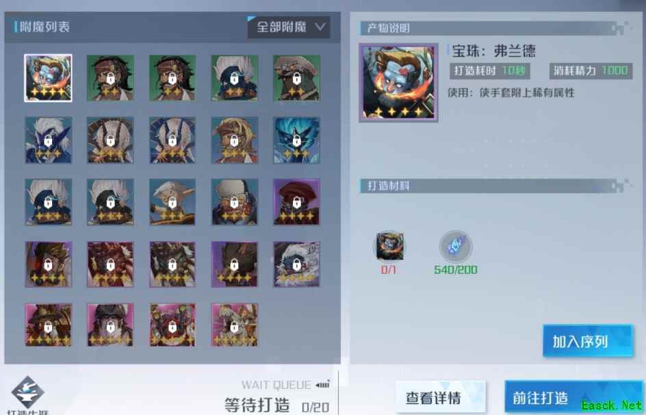 3、附魔加工:工匠里面的附魔加工也是跟前面厨师附魔的条件一样,必须先解锁图鉴,通过交易行或者副本掉落获得,唯一不同的是不同的生活职业附魔的部位不一样。