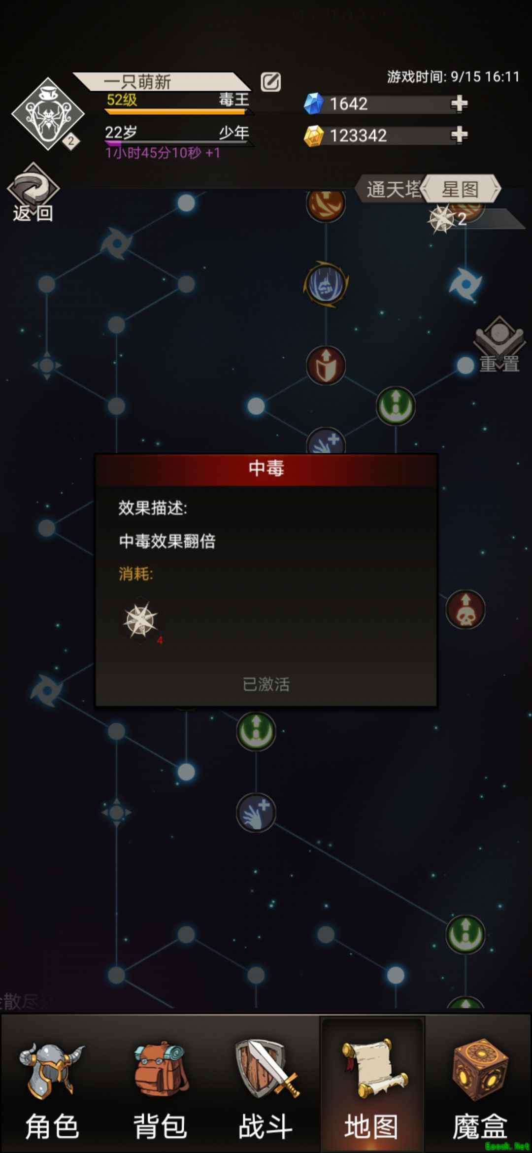 在星图中有一个中毒效果翻倍,应该是伤害翻倍吧,点上就对了。星图中的吸血也可以点点。