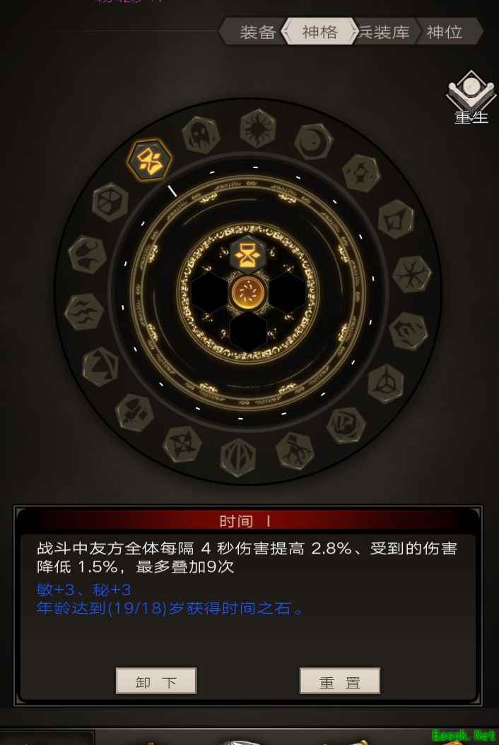 第一次重生以后选的神格选择属性增强最高的神格就行,这种是算通用神格不要选流派向的前期流派提升非常少。