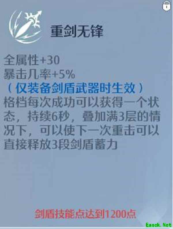 3.在后期职业技能点到1200技能点时,把通用天赋页的【厉战之躯】换为双刀天赋页的【重剑无锋】毕业天赋没有之一。