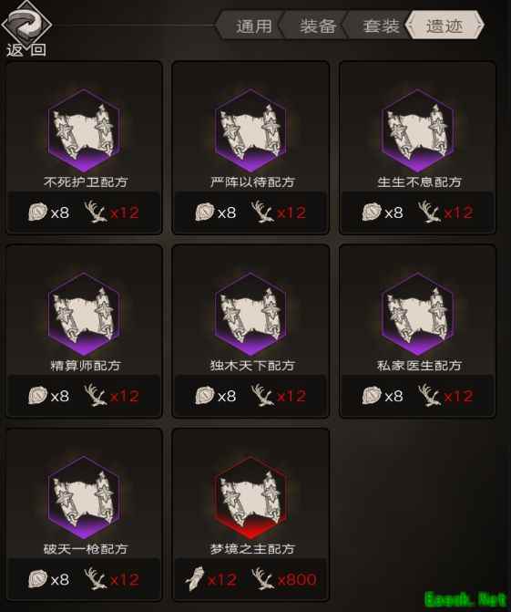 代价为同级(8-12级为紫色眼睛,13-18级为橙色牌子,19-24级为绿色牌子,25-30为红色牌子)+副本掉落远古残骸兑换对应的词缀配方(配方概念为全部位附魔),重复兑换即可升级。