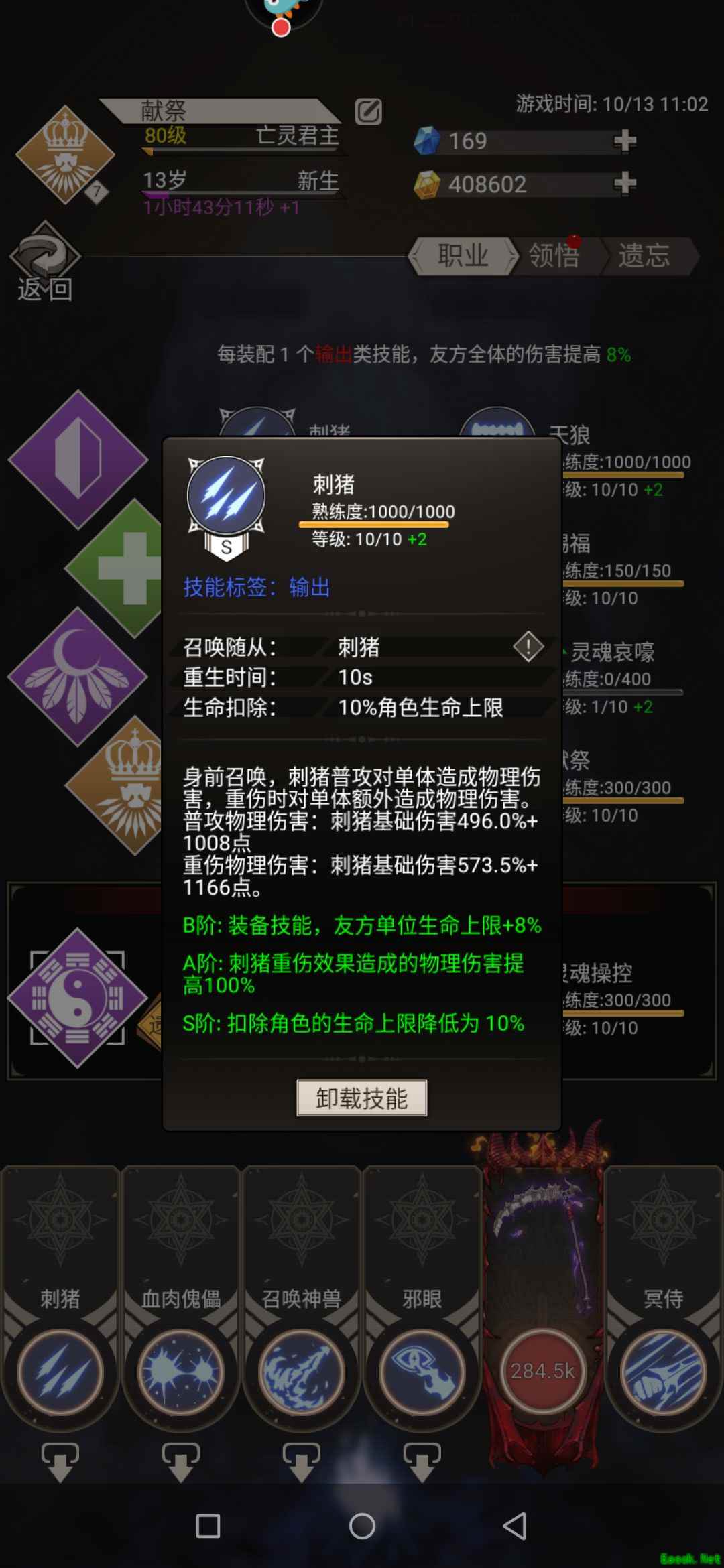 四转技能的话,亡灵君主肯定必点咯。注意下献祭的加成除了暗属性最重要的是血上限,血量加成。