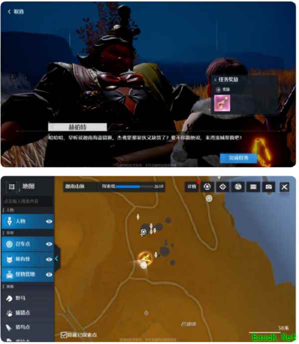 三、跟酒馆老板对完话后,去巴珊镇找赫伯特取酒。