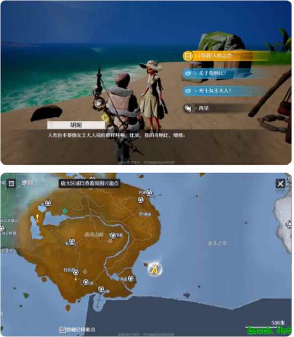 三、前往迦南山脉东南方的第二座小岛上与NPC:胡妮对话(迷失之海地理志贸易巷获取)