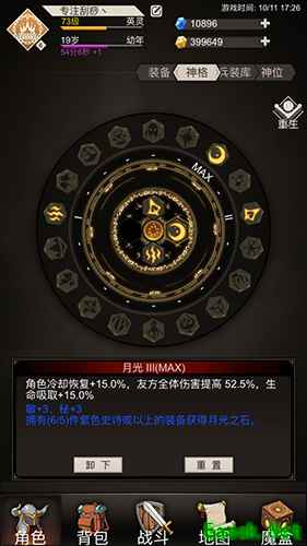 因为沙漏不够的原因,目前我是月光三级,破坏二级,战斗一级。这已经是沙漏洗完的结果了。