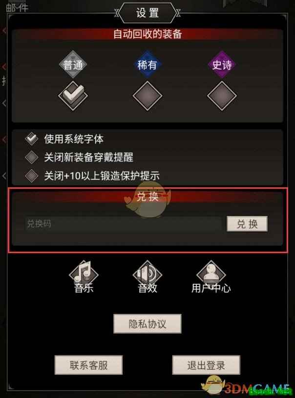 兑换的位置就在游戏首屏的设置页里面,输入兑换码即可兑换。