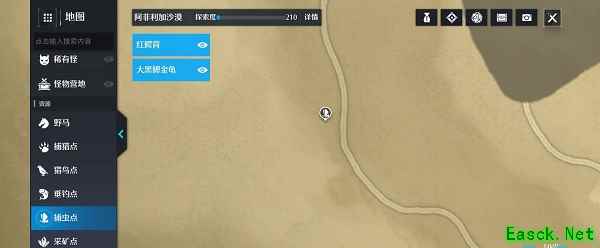 1.昆虫的捕捉需要我们使用工具捕网,那么那些地方有昆虫呢?第一个最简单的方式就是,我们点开右上角的地图,再点开左边的捕虫点,就可以锁定我们想要找到的各种昆虫进行捕捉。