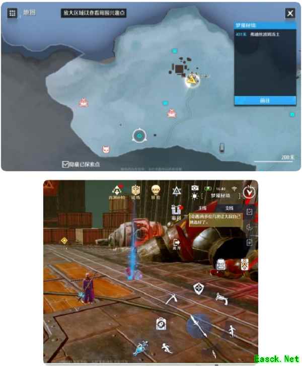三、前往梦魇秘境(雾夜总部南方)寻找石头三块。进入秘境后点击任务栏,跟随任务指引即可找到石头。
