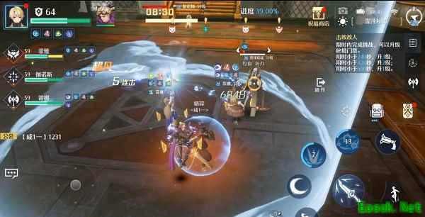 像我们选择的近卫修泽,就是一个可以给全队提供防御力加成的。他的大招在使用后能够生成一片防护区域,这片防护区域可以为队友增加免伤效果,而且等到武器强化后,修泽的这个范围防御还可以给队友增加额外的反伤效果。再加上大招使用后会出现的近卫护盾被动,还是有一定保命能力的。(不过近卫的护盾配合上泽达的贤者被动回血并不能撑太久,越高层越需要稳定的治疗)