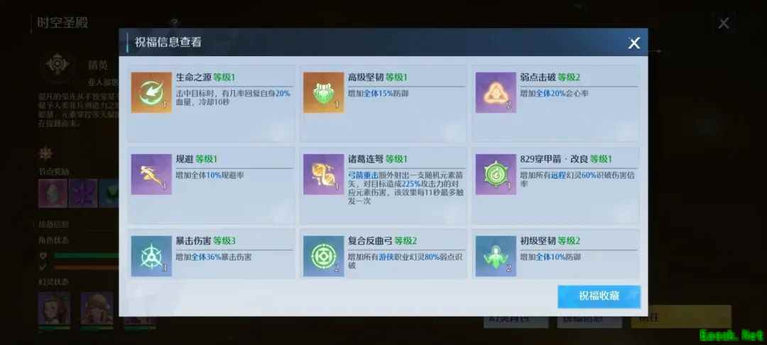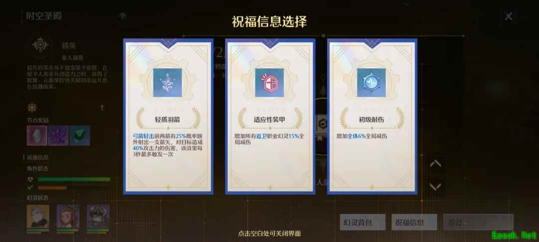 时空圣殿中每击败一层怪物,在开始下一层挑战之前,就会弹出祝福信息的选择。