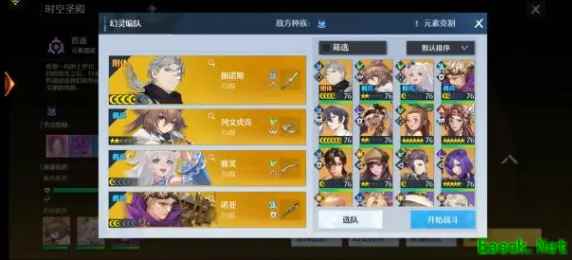 伽诺斯与卡弥的配合大幅度提高雷元素伤害(卡弥作为斗士替换掉游侠,可以减少在通关高层数时幻灵死亡的概率)。编队阵容中有着风元素、水元素与雷元素可以增加对多元素怪物层的伤害。
