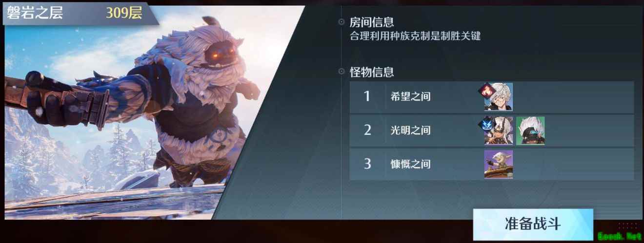 306层到309层中,这四层怪物种族相似,所以推荐三套幻灵阵容即可轻松通关这四关,第一层推荐附体诺亚·零,其余幻灵为雅芙·零等其他两个幻灵,主要选择依据为这一关的推荐评分为黄颜色(幻灵星级越高,提供全局增伤越高,推荐四个幻灵总星级在35星左右)。第二层推荐附体真田·幸子或者波洛·赫莎,其余幻灵佣兵为夏莉·格兰杰,阿提因·拖勒密等。推荐总星级幻灵在35星左右,第一层和第二层的幻灵评分在35W分左右。第三层推荐附体伽诺斯·欧几里德,其余幻灵佣兵为维克塔·雨果等,幻灵总评分在22W左右,星级在24星左右,全局增伤+30%。这四层的幻灵阵容选择依据为克制怪物种族的幻灵。