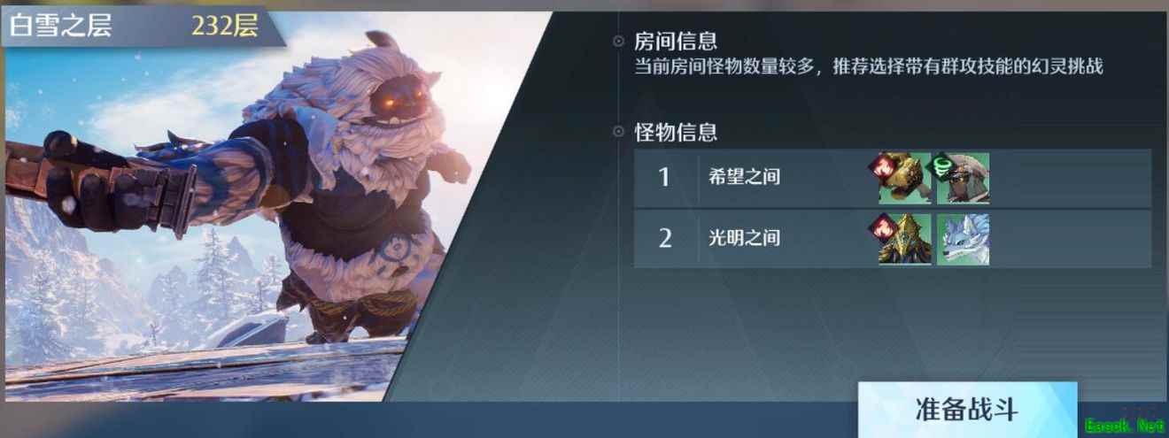 231层-234层怪物种类类似,两层的光明试炼怪物皆为烈焰种族,所以我推荐各位冒险家们一队附体怒涛种族的诺亚,其余为雅芙,伽诺斯,马德兰,二队附体怒涛种族的英格拉姆,其余为维克塔,夏莉,芒色。这两队幻灵的种族相互对应,诺亚和英格拉姆的种族皆为怒涛,夏莉和雅芙的种族皆为风暴,伽诺斯和维克塔的种族皆为雷霆,马德兰和芒色的种族皆为暗影,如果遇到打不过的层数,可以使用重置幻灵武器的技巧来通关试炼。