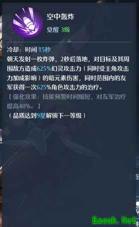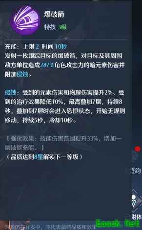 解析:这是一个跟踪技能,但是还是别想用他来pvp了,洛朗本身伤害并不高,主要还是用来叠加侵蚀buff的。