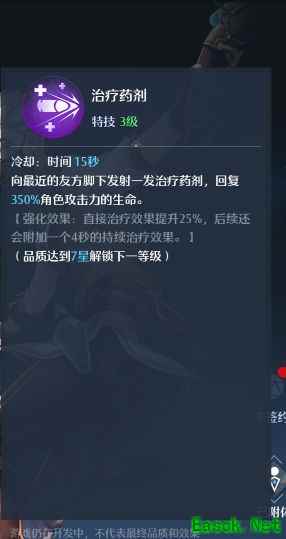 解析:不要总想着看百分之六百多的伤害有多高,主要还是要看这百分之六百二十五的治疗。在武器达到三十级以后,足足有百分之六百六十五的回血量,都快相当于起死回生了。