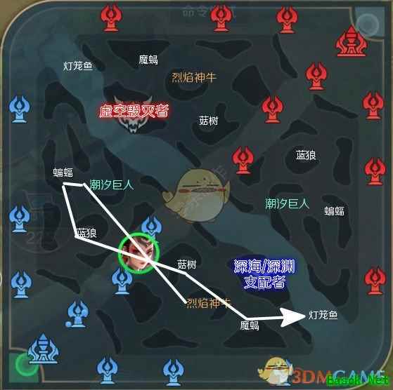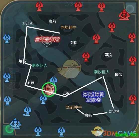 2、优先把我方两个BUFF怪打掉(防止敌方打完自己的野来反野),遇到敌方开局反野则自认倒霉,能退就退。
