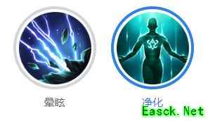 净化:解除自身所有负面和控制效果(支配效果除外)并免疫控制持续1.5秒。只能解开一部分控制,被集火/多人控制时一点没有。此技能不建议新手携带,除非你能全部识别所有支配效果。