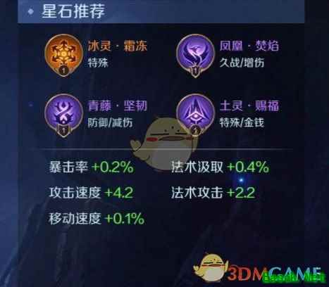 冰灵霜冻让你的一技能更好命中敌方英雄。凤凰焚烧配合大招可以快速将它的被动打满。青藤坚韧可以避免被法师消耗太多血量更好度过前期。土灵赐福可以使装备成型快,因为法装挺贵的。