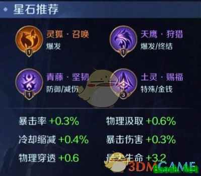 常规射手星盘主攻速、移速、暴击率、物理伤害和物理汲取,但是由于黄月英本身机动性比较差,没有固定的报名技能,所以这套星盘有增大最大生命和每秒回血,保证前期基本续航。