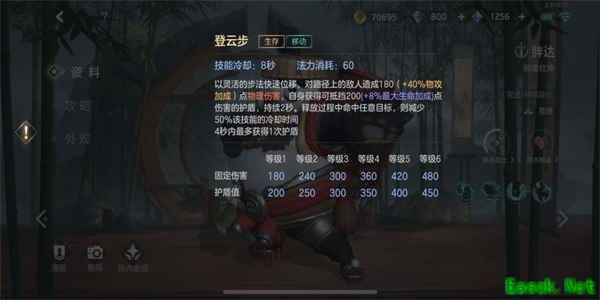 以灵活的步法快遗位移,对路径上的敌人透成180( +40%物攻加成》点物理伤害,自身获得可抵挡200(+8%最大生命加成).点伤博的护盾,持续2秒。释敛过程中命中任意目标,则减少50%该技能的冷却时间4秒内最多获得1次护盾。