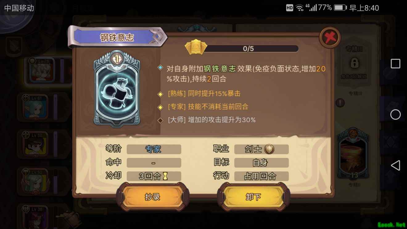 然后看下反击的,首先先上钢铁意志这技能免疫负面状态(再也不怕晕了),看下图。