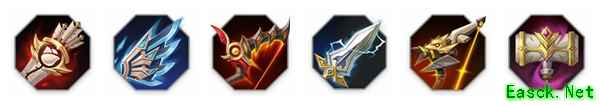 出装一:蔷薇箭袋+刀锋之翼+绯红之刺+龙胆三击+狂放之击+神圣救赎
