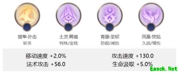 猎隼·扑击、土灵·赐福、青藤·坚韧、凤凰·焚焰