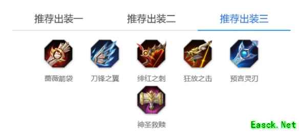 蔷薇箭袋+刀锋之翼+绯红之刺+狂放之击+预言灵刃=神圣救赎