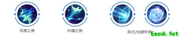 获得100%的移速加成和350点的护盾,随等级提升,持续2秒,快速移动时可以击飞沿途的敌方单位0.75秒,并对他们造成240点法术伤害,随等级提升,被动效果:当范围内有敌人被击飞时,会获得1只风燕,并自动生成一只风燕对敌人造成20点法术伤害并附带缠绕效果。