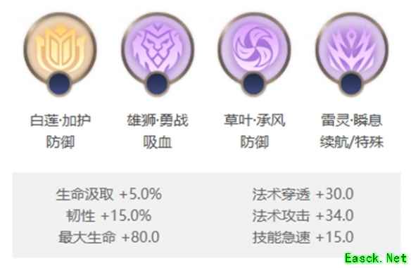 白莲·加护、雄狮·勇战、草叶·承风、雷灵·瞬息
