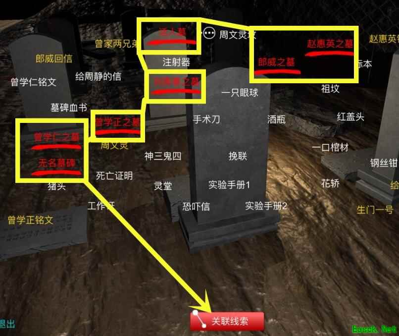 名录线索位置:这个线索需要关联其他线索才能获得,分别是:【曾学仁之墓】、【无名墓碑】、【曾学正之墓】、【刘青春之墓】、【郎威之墓】、【赵惠英之墓】、【活人墓】。