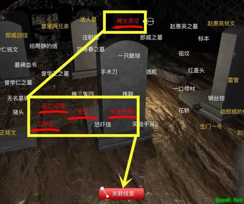 【灵堂】、【死亡证明】、【实验手册1】、【工作证】、【周文灵坟】