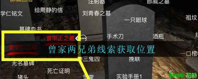 曾家两兄弟:关联线索【曾学正之墓】和【曾学仁之墓】即可获得。
