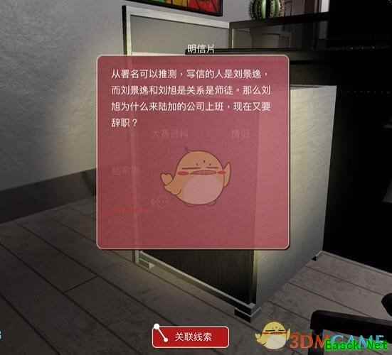 关系:刘旭以及刘景逸之间的关系,应该不会很普通。线索位置:将找到的刘旭以及明信片,和一封信进行关联,得到这个线索。