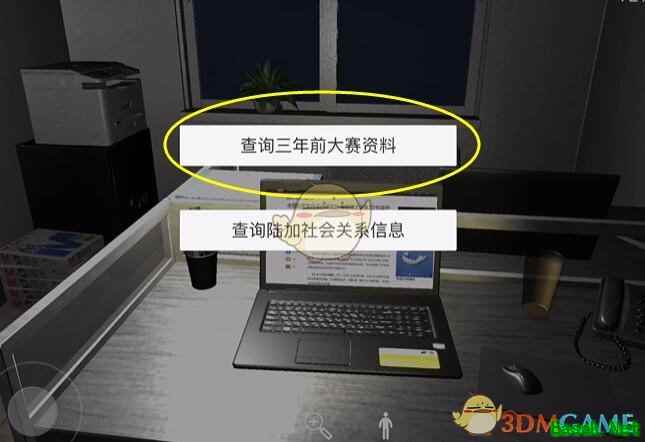 在财务室电脑开机之后,进入网页点击调查三年前大赛资料。