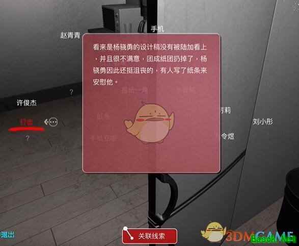 将找到纸团,一张纸条,以及赵青青和记事本关联起来,找到这个线索。