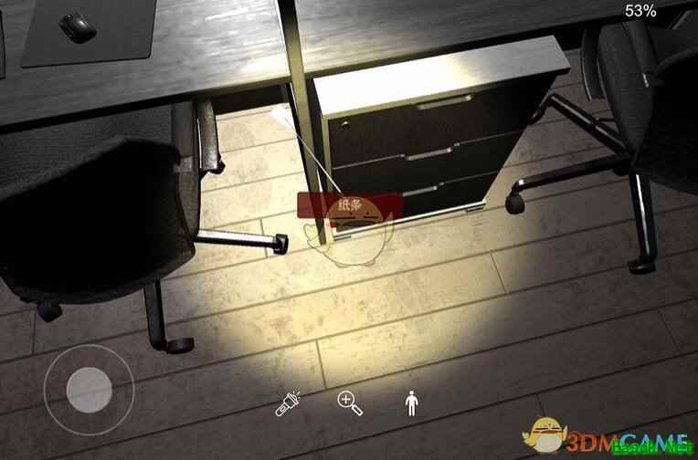 在桌子的下面,需要打开手电筒仔细搜索。