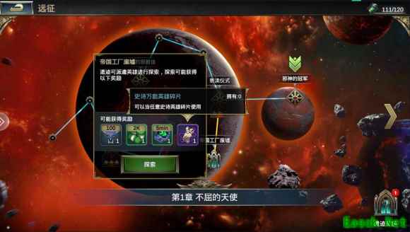 当然玩家所获取英雄单位的方式,不仅仅只依靠上述的方法。在“远征”系统中,玩家也可以在某些特定的关卡中,获得英雄的碎片,通过不断的积累碎片也可在主基地中打开仓库,尝试合成某一英雄单位。