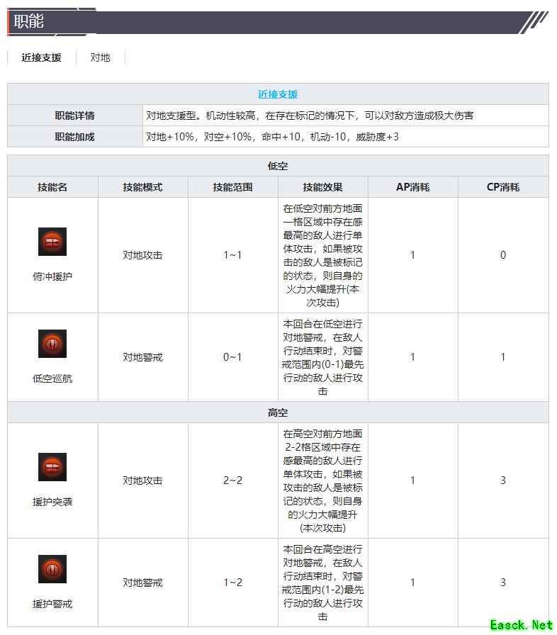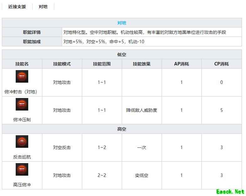 进行对地攻击时的对地火力中幅提升(本次攻击),受到地面攻击的伤害降低15% (本次攻击)