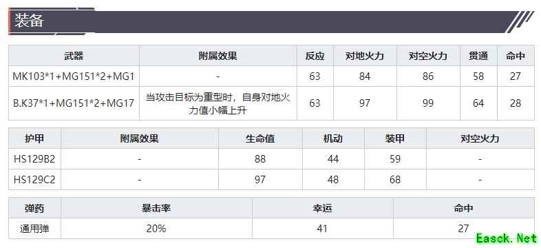 灰烬战线HS129B-2怎么样?在灰烬战线中,HS129B-2是初始1星的攻击机,有玩家想知道HS129B-2怎么样,下面就让小编给大家介绍一下,一起来看看吧。